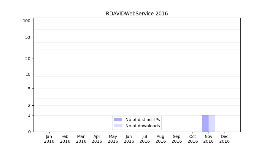 Number of downloads for experiment package RDAVIDWebService, year by year, from 2025 back to 2014 (years with no downloads are omitted):