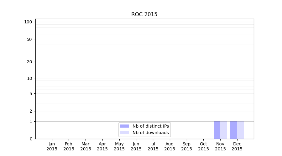 Number of downloads for experiment package ROC, year by year, from 2025 back to 2014 (years with no downloads are omitted):