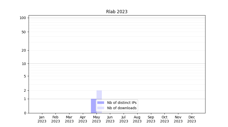 Number of downloads for experiment package Rlab, year by year, from 2025 back to 2014 (years with no downloads are omitted):