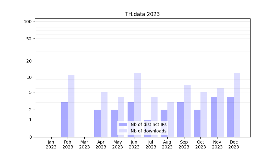 | Month | Nb of distinct IPs | Nb of downloads |