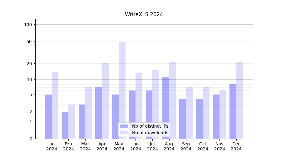 | Month | Nb of distinct IPs | Nb of downloads |