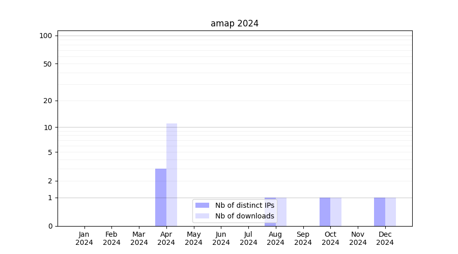 Number of downloads for experiment package amap, year by year, from 2025 back to 2014 (years with no downloads are omitted):