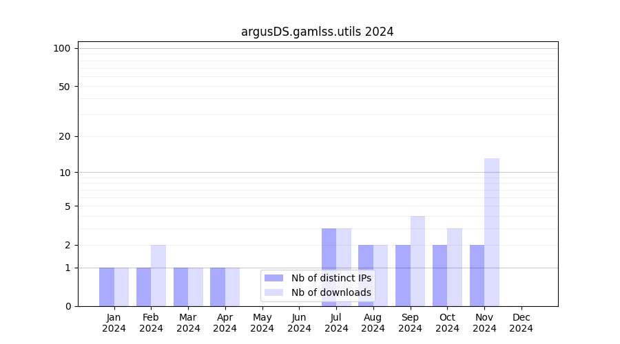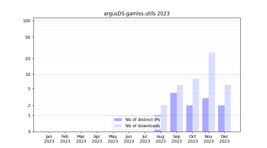 Number of downloads for experiment package argusDS.gamlss.utils, year by year, from 2025 back to 2014 (years with no downloads are omitted):