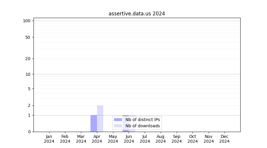 Number of downloads for experiment package assertive.data.us, year by year, from 2025 back to 2014 (years with no downloads are omitted):