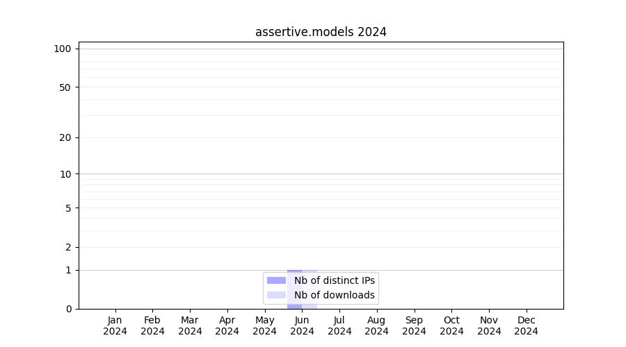 Number of downloads for experiment package assertive.models, year by year, from 2025 back to 2014 (years with no downloads are omitted):