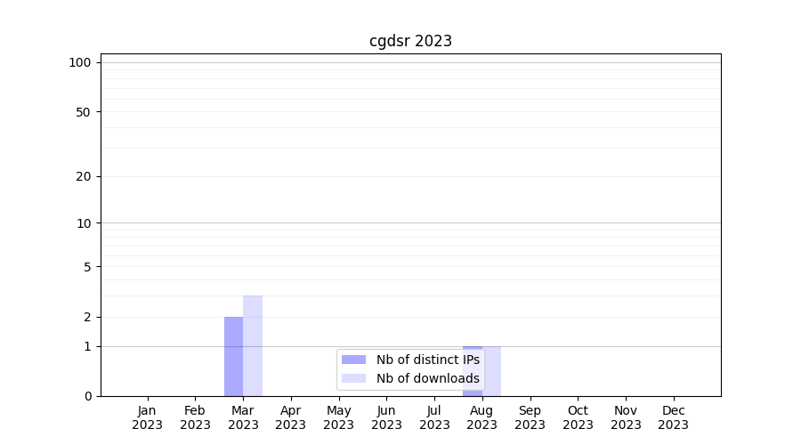 Number of downloads for experiment package cgdsr, year by year, from 2025 back to 2014 (years with no downloads are omitted):