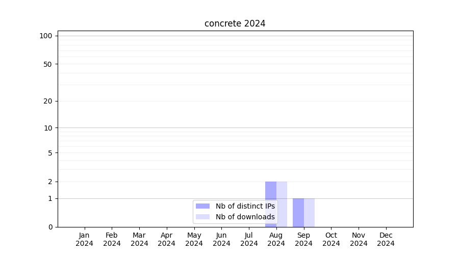 Number of downloads for experiment package concrete, year by year, from 2025 back to 2014 (years with no downloads are omitted):