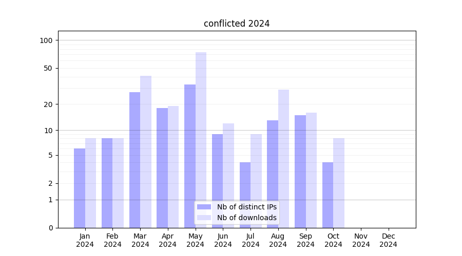 | Month | Nb of distinct IPs | Nb of downloads |