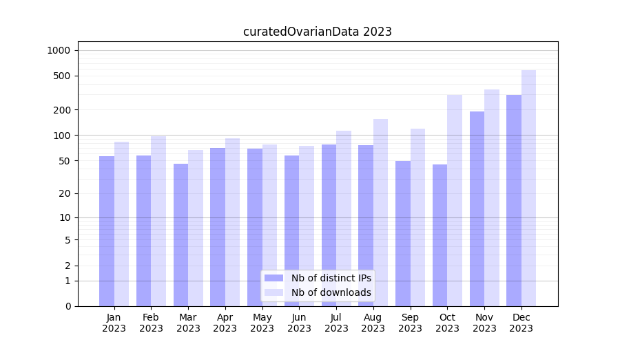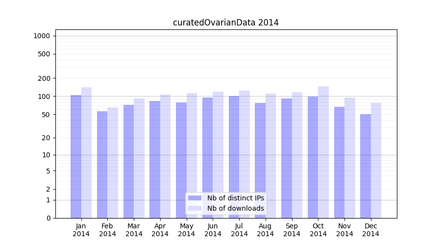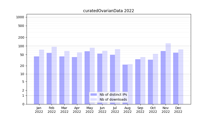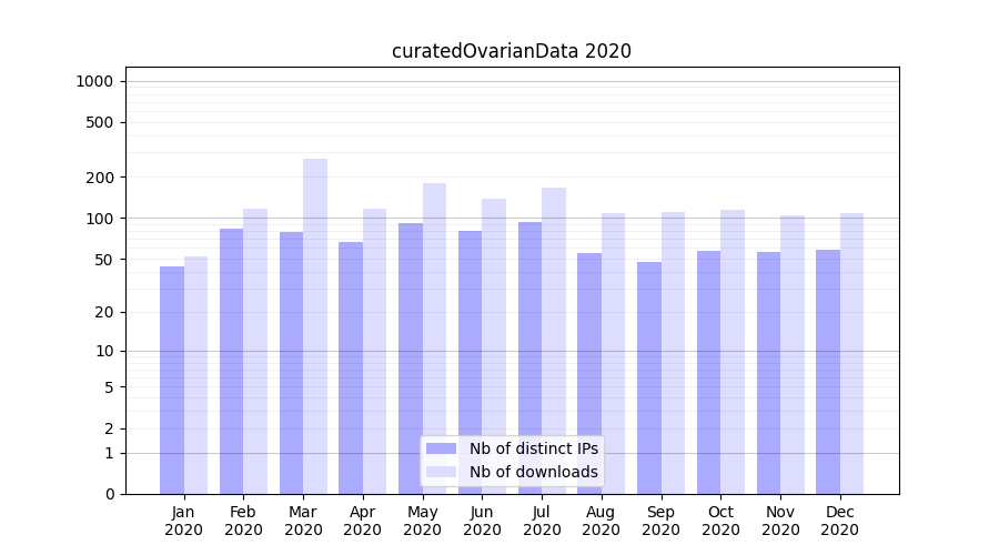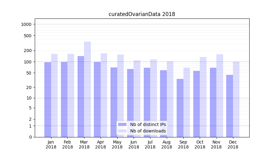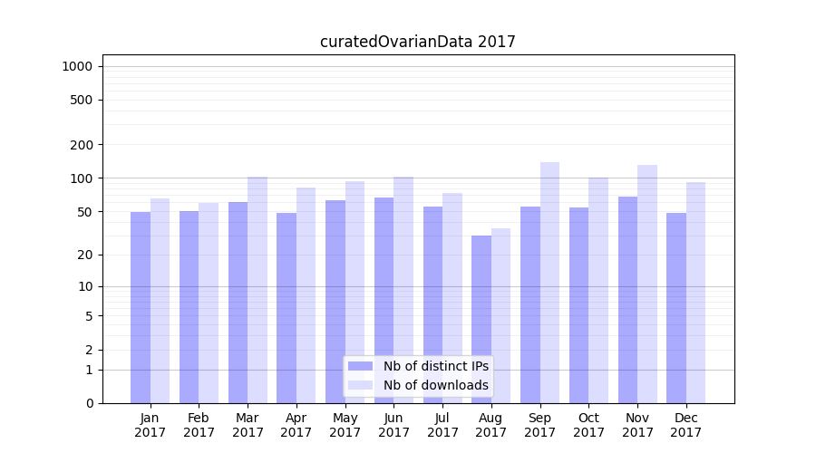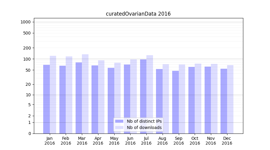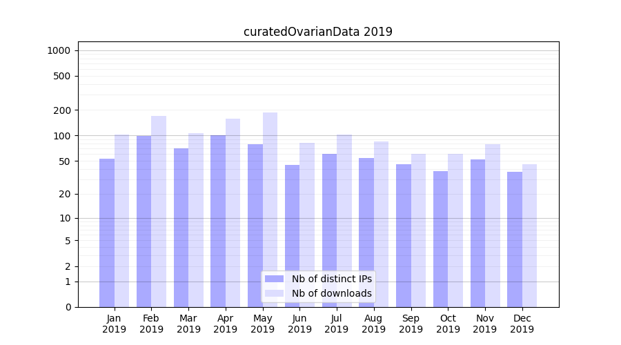 Download stats for experiment package curatedOvarianData