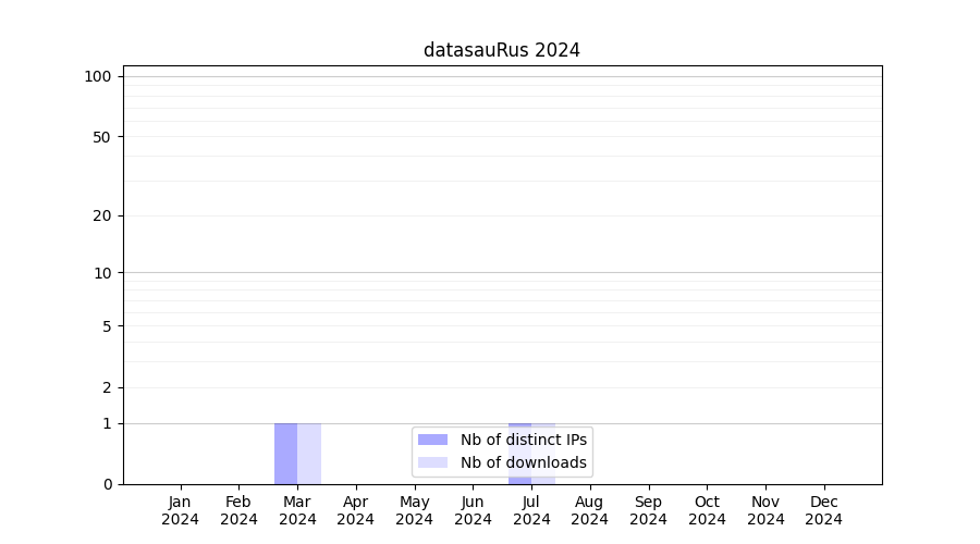 Number of downloads for experiment package datasauRus, year by year, from 2025 back to 2014 (years with no downloads are omitted):