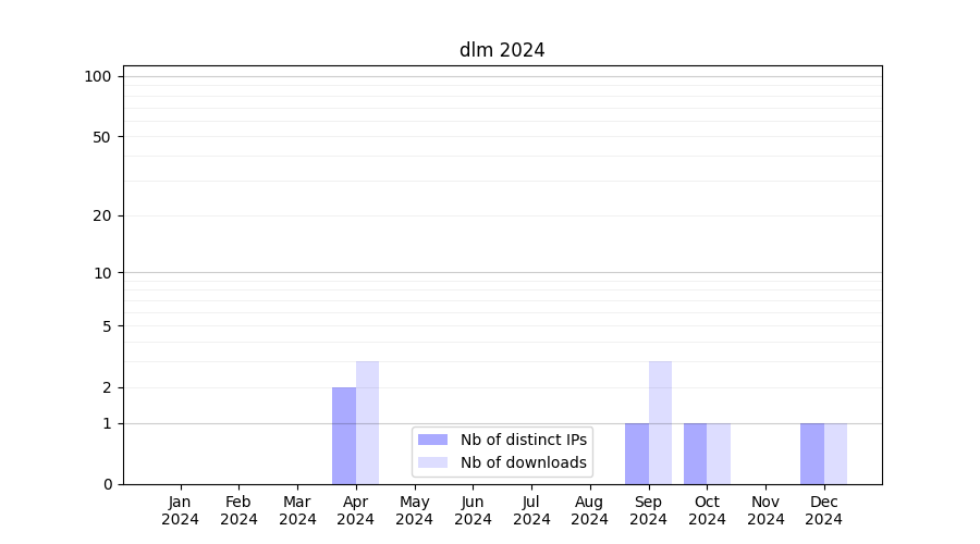 Number of downloads for experiment package dlm, year by year, from 2025 back to 2014 (years with no downloads are omitted):