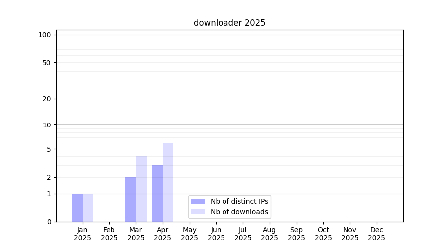 Number of downloads for experiment package downloader, year by year, from 2025 back to 2014 (years with no downloads are omitted):