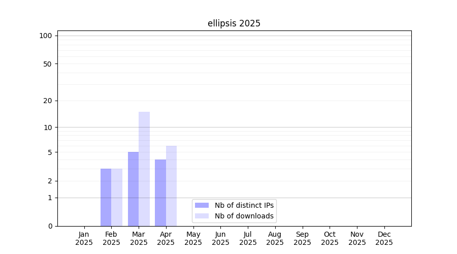 Number of downloads for experiment package ellipsis, year by year, from 2025 back to 2014 (years with no downloads are omitted):
