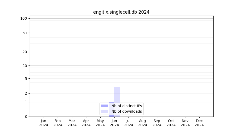 Number of downloads for experiment package engitix.singlecell.db, year by year, from 2025 back to 2014 (years with no downloads are omitted):