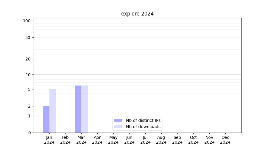 Number of downloads for experiment package explore, year by year, from 2025 back to 2014 (years with no downloads are omitted):