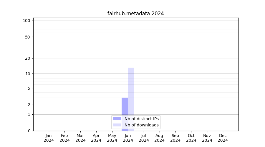 Number of downloads for experiment package fairhub.metadata, year by year, from 2025 back to 2014 (years with no downloads are omitted):