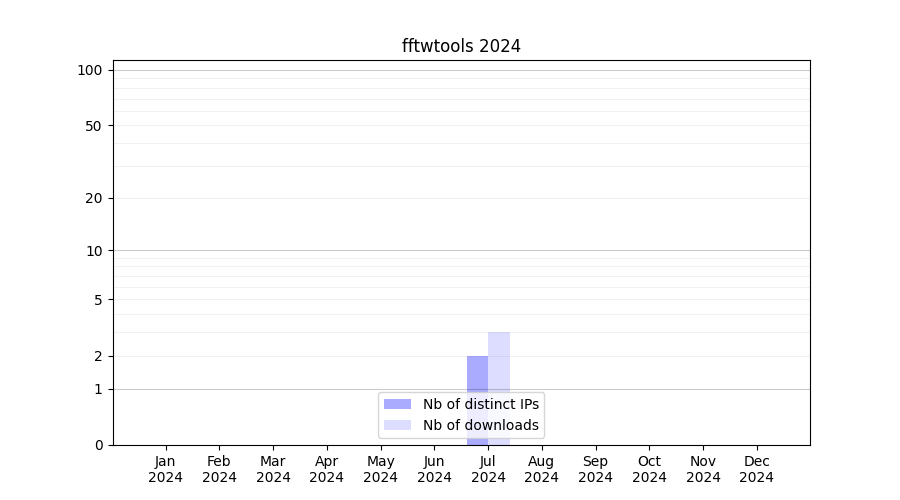 Number of downloads for experiment package fftwtools, year by year, from 2025 back to 2014 (years with no downloads are omitted):