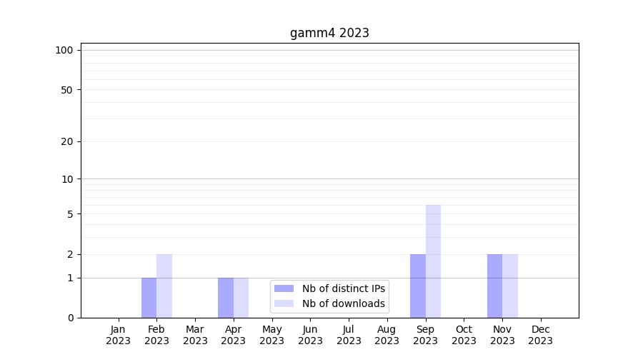 Number of downloads for experiment package gamm4, year by year, from 2025 back to 2014 (years with no downloads are omitted):