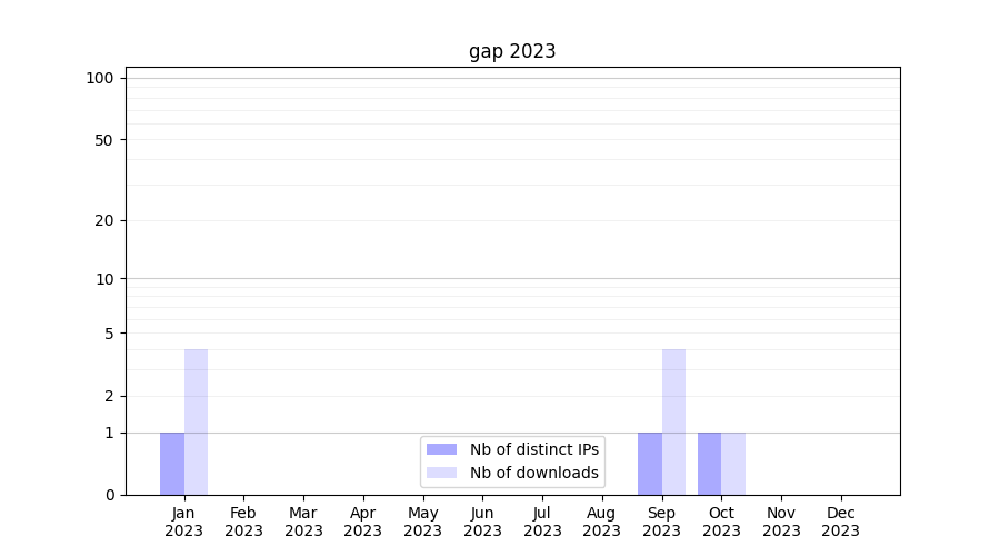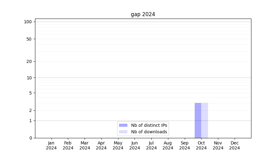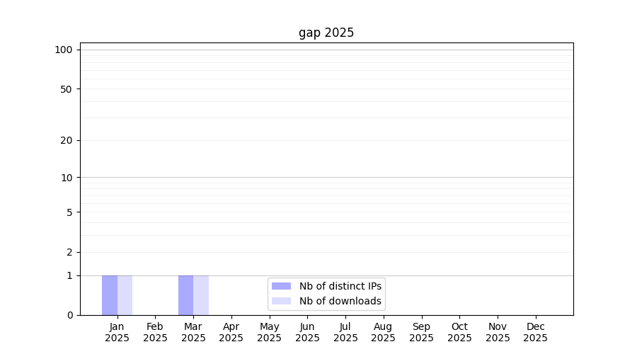 Number of downloads for experiment package gap, year by year, from 2025 back to 2014 (years with no downloads are omitted):
