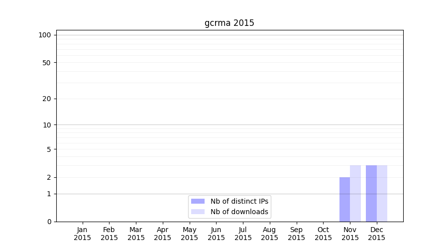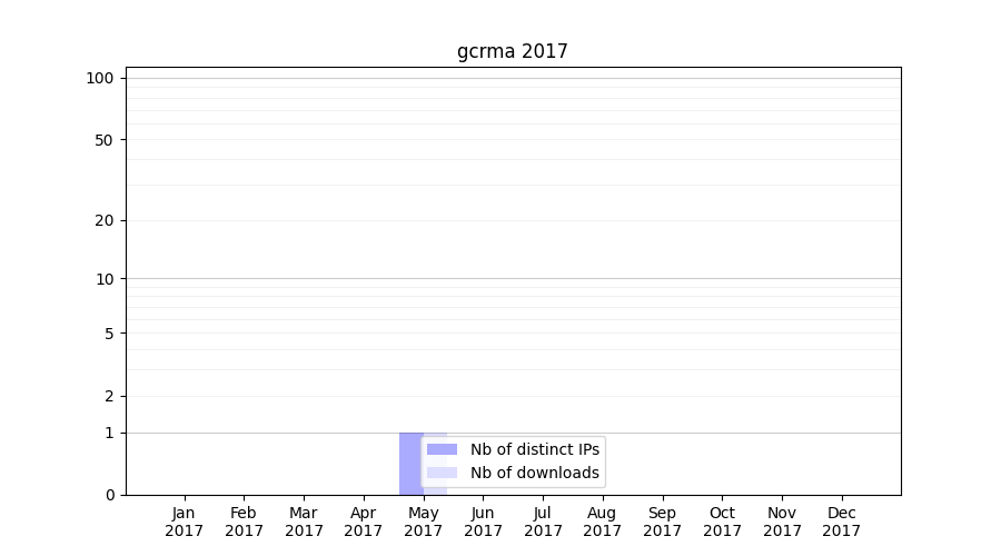 Number of downloads for experiment package gcrma, year by year, from 2025 back to 2014 (years with no downloads are omitted):