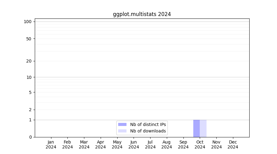 Number of downloads for experiment package ggplot.multistats, year by year, from 2025 back to 2014 (years with no downloads are omitted):