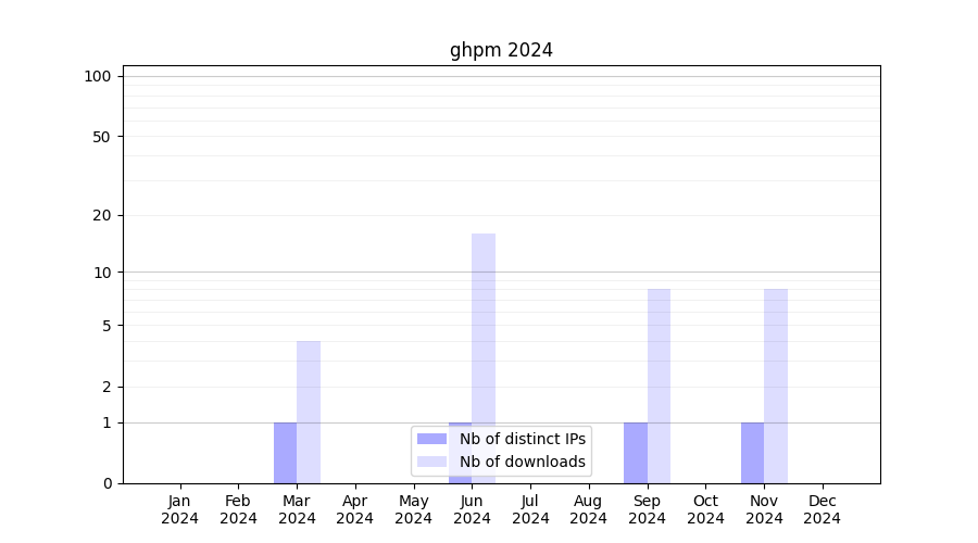 Number of downloads for experiment package ghpm, year by year, from 2025 back to 2014 (years with no downloads are omitted):