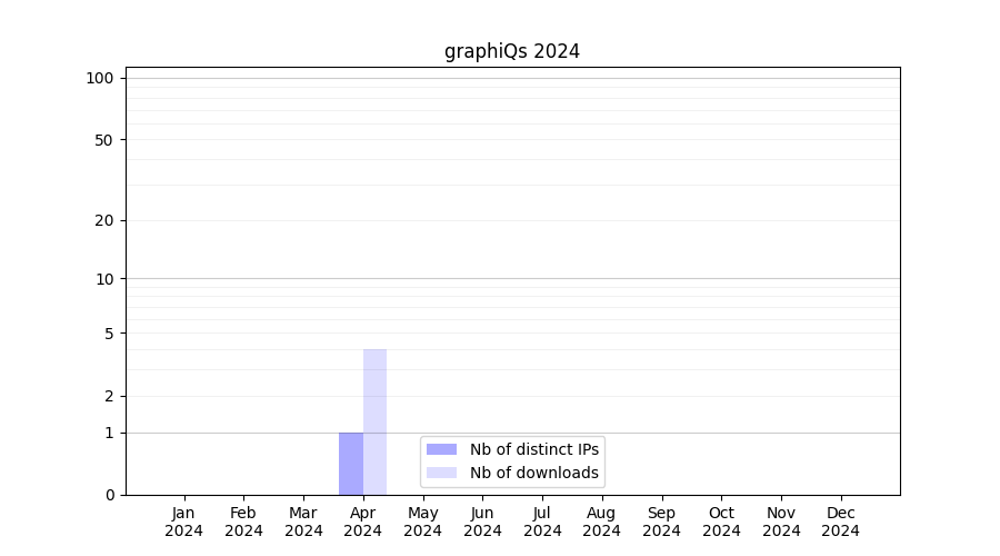 Number of downloads for experiment package graphiQs, year by year, from 2025 back to 2014 (years with no downloads are omitted):
