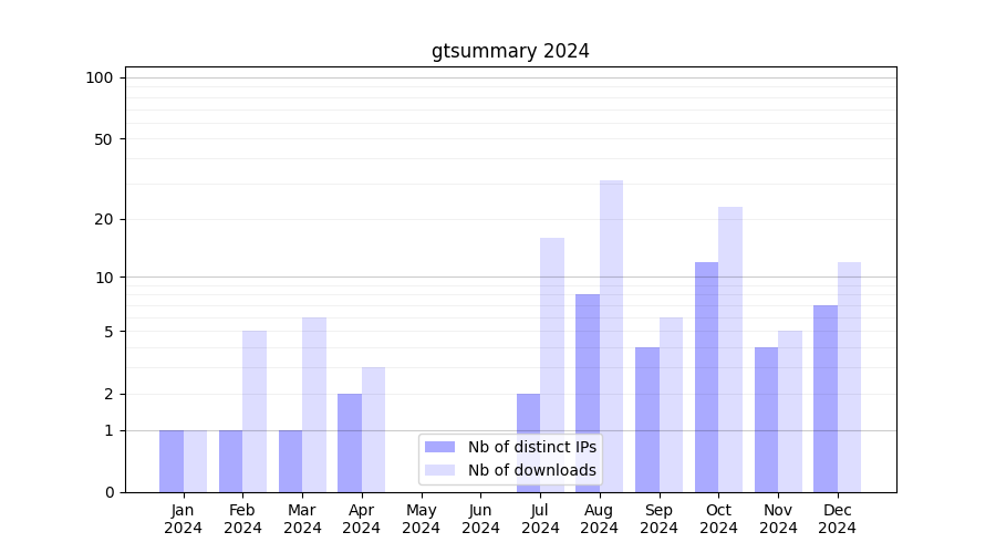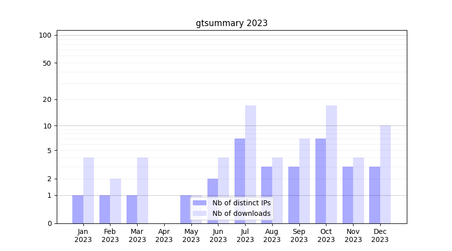 | Month | Nb of distinct IPs | Nb of downloads |