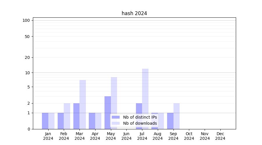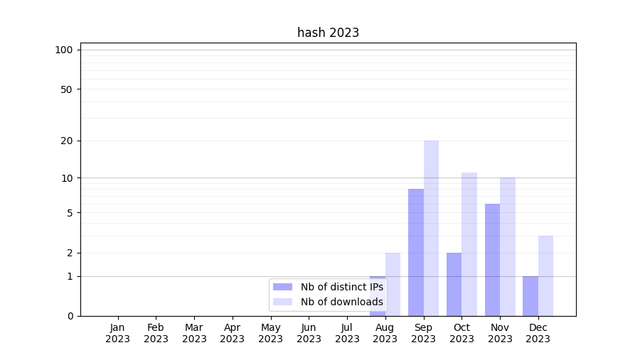 Number of downloads for experiment package hash, year by year, from 2025 back to 2014 (years with no downloads are omitted):