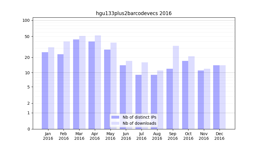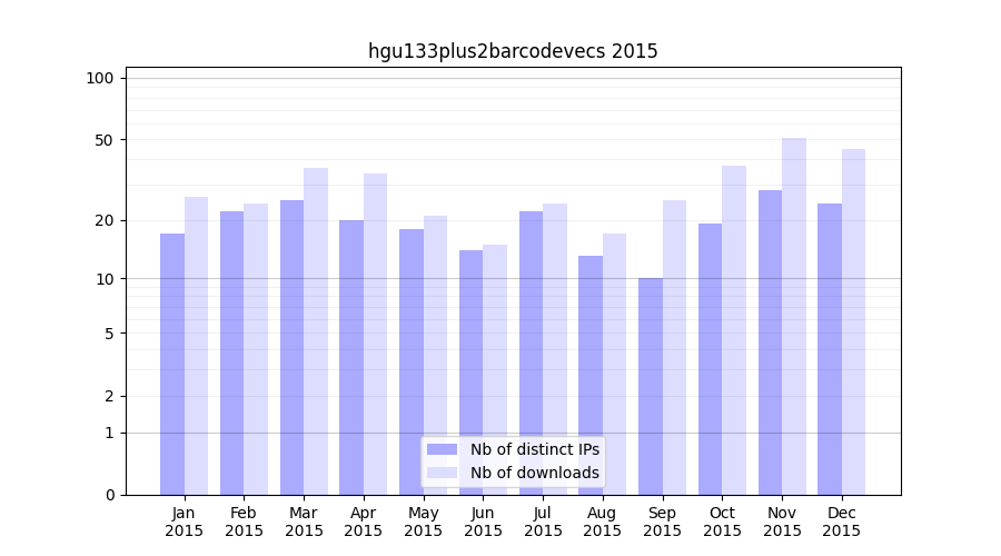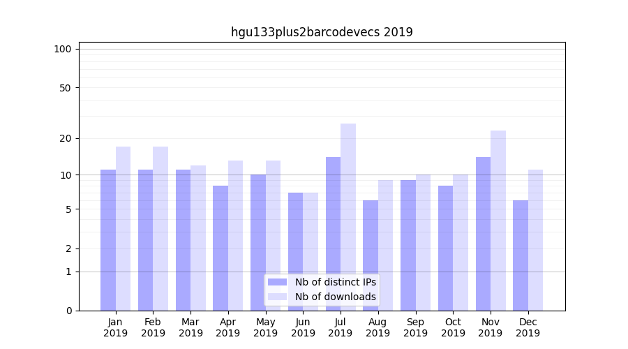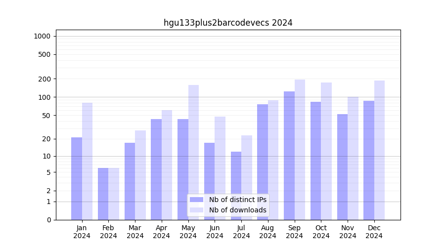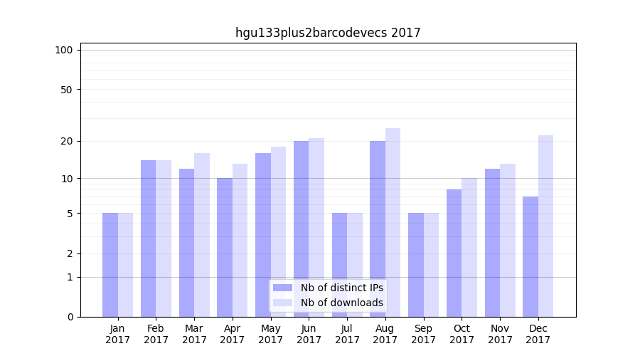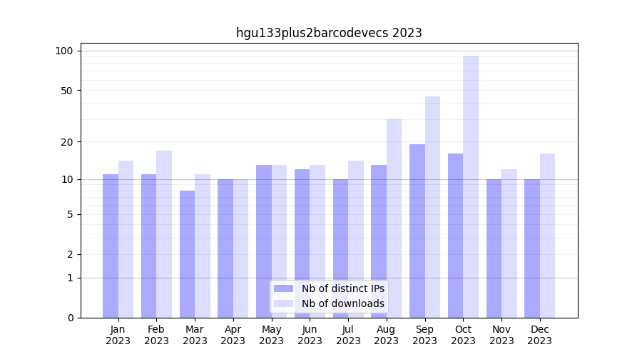 Download stats for experiment package hgu133plus2barcodevecs