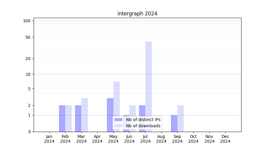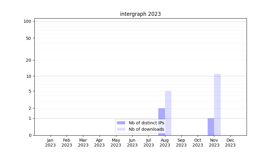 Number of downloads for experiment package intergraph, year by year, from 2025 back to 2014 (years with no downloads are omitted):