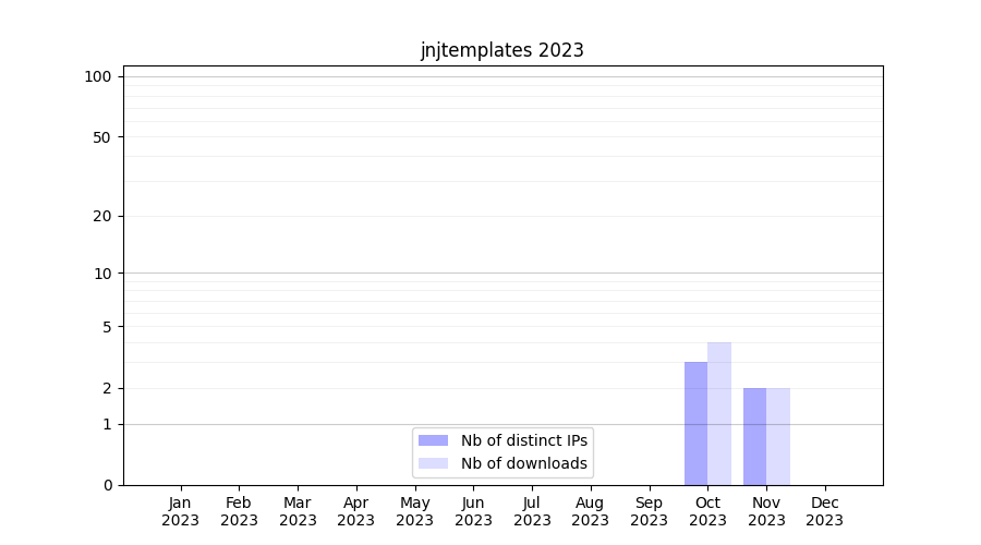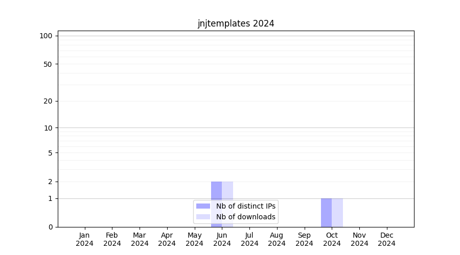 Number of downloads for experiment package jnjtemplates, year by year, from 2025 back to 2014 (years with no downloads are omitted):