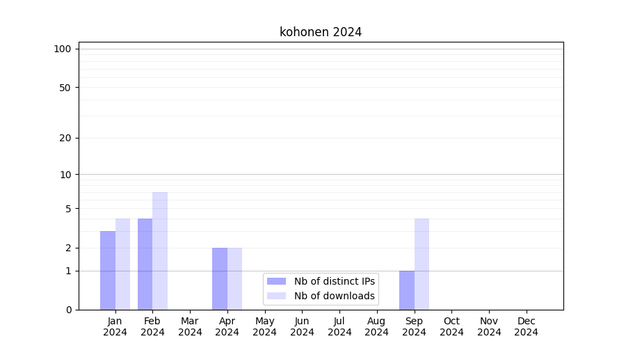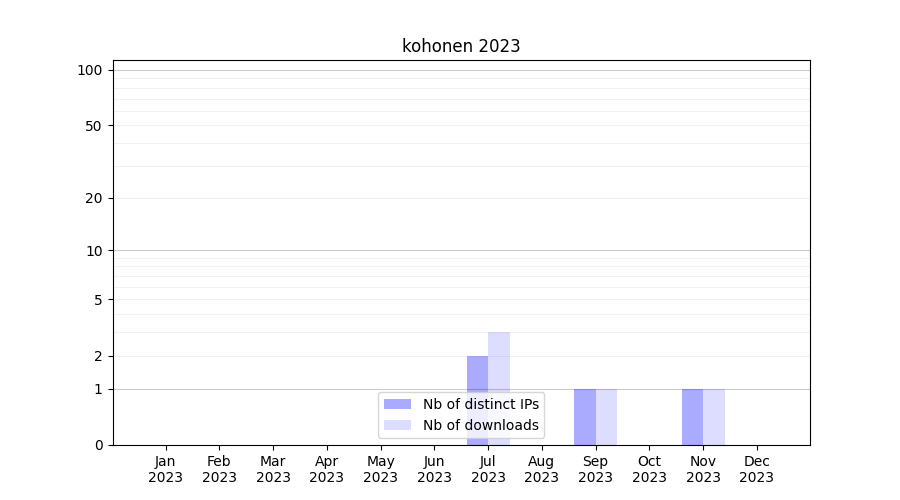 Number of downloads for experiment package kohonen, year by year, from 2025 back to 2014 (years with no downloads are omitted):
