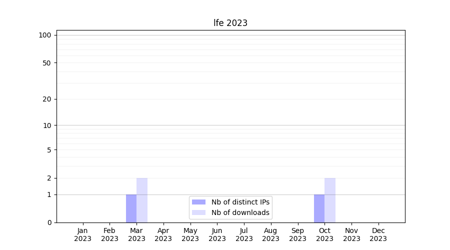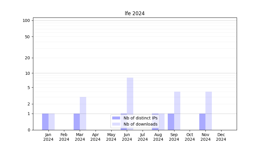 Number of downloads for experiment package lfe, year by year, from 2025 back to 2014 (years with no downloads are omitted):
