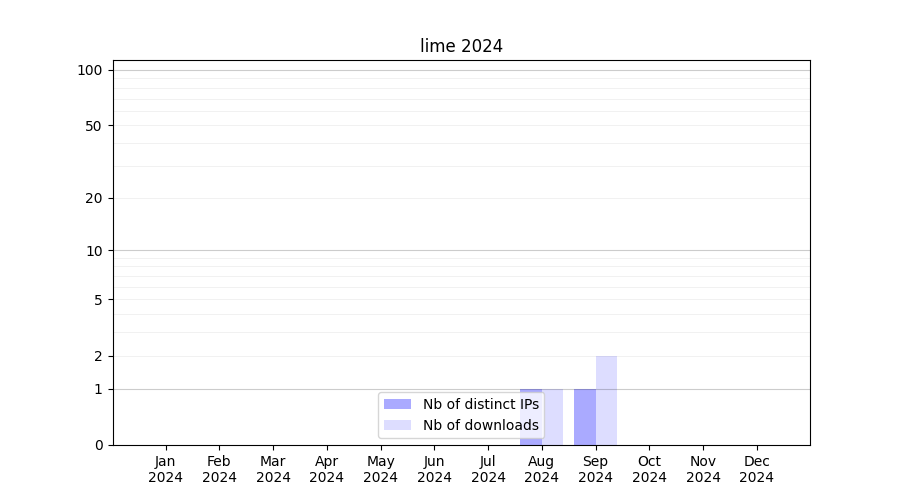 Number of downloads for experiment package lime, year by year, from 2025 back to 2014 (years with no downloads are omitted):