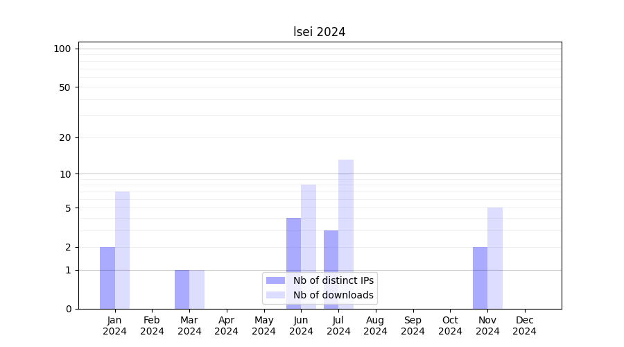 Number of downloads for experiment package lsei, year by year, from 2025 back to 2014 (years with no downloads are omitted):