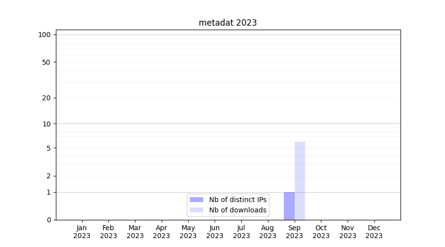 Number of downloads for experiment package metadat, year by year, from 2025 back to 2014 (years with no downloads are omitted):