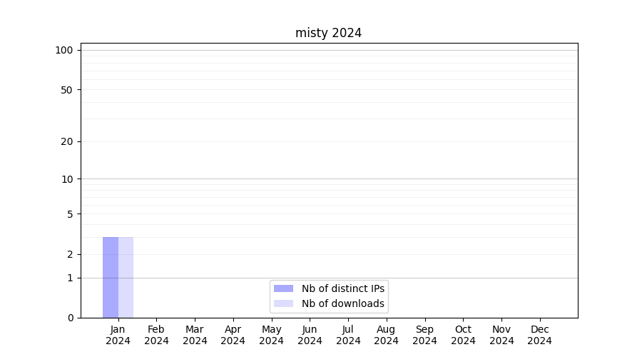 Number of downloads for experiment package misty, year by year, from 2025 back to 2014 (years with no downloads are omitted):