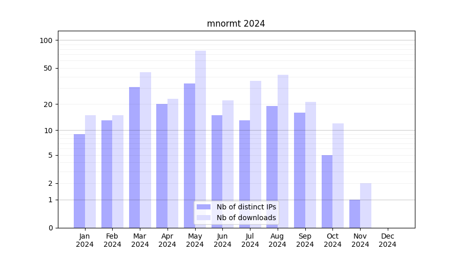 | Month | Nb of distinct IPs | Nb of downloads |