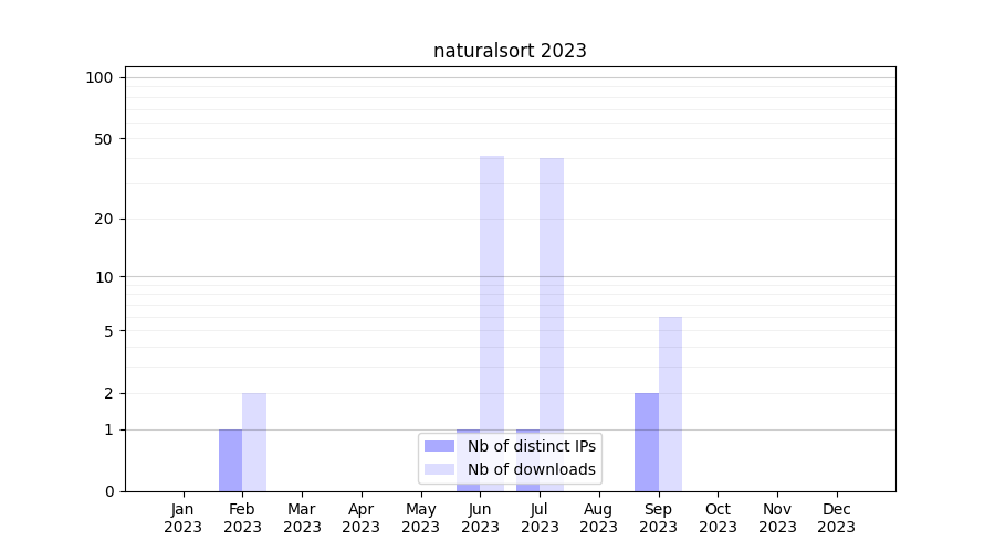 Number of downloads for experiment package naturalsort, year by year, from 2025 back to 2014 (years with no downloads are omitted):