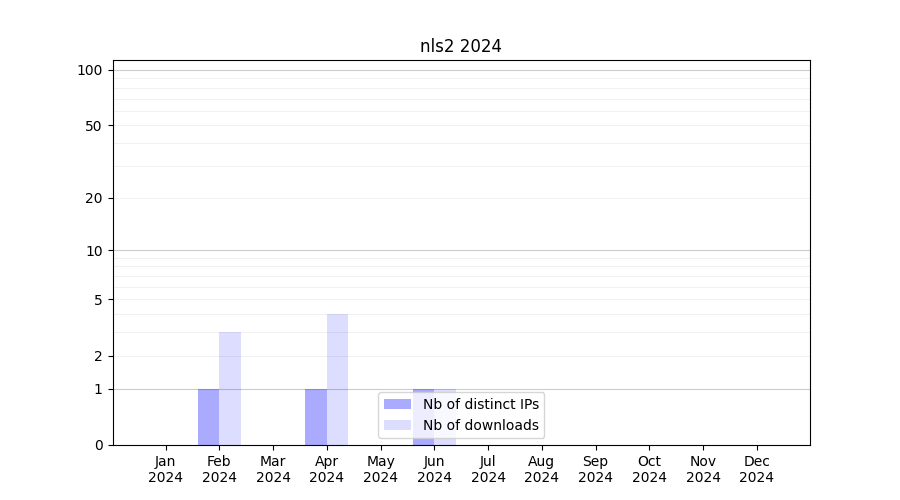 Number of downloads for experiment package nls2, year by year, from 2025 back to 2014 (years with no downloads are omitted):