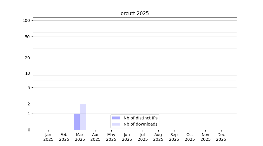 Number of downloads for experiment package orcutt, year by year, from 2025 back to 2014 (years with no downloads are omitted):