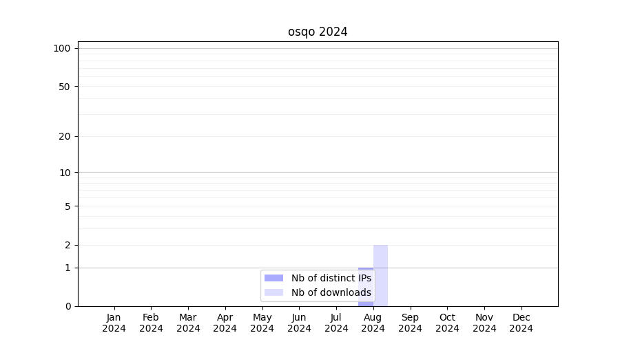 Number of downloads for experiment package osqo, year by year, from 2025 back to 2014 (years with no downloads are omitted):