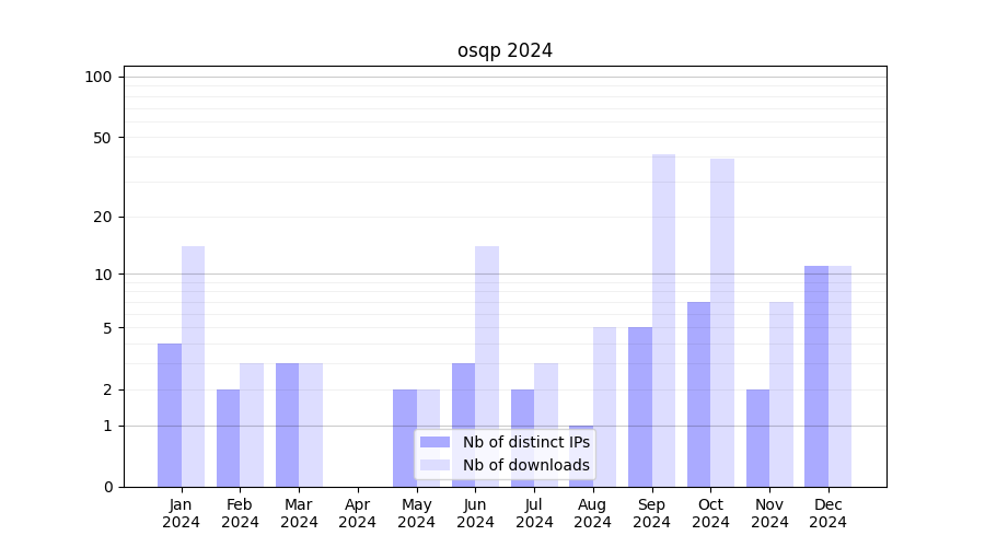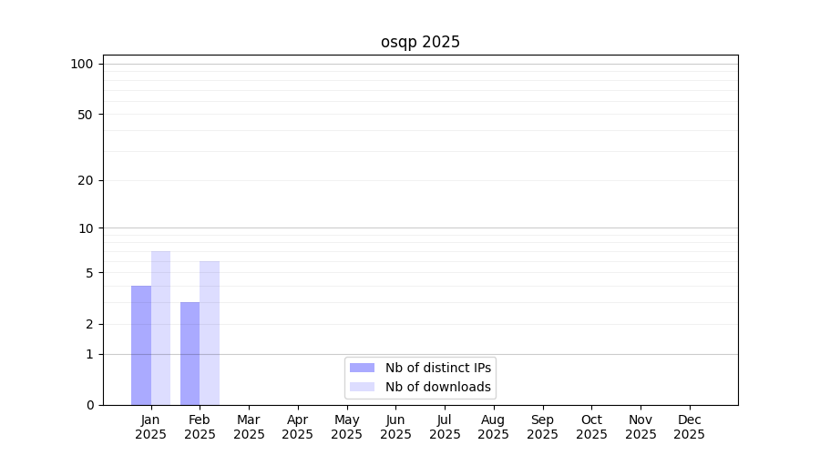 Number of downloads for experiment package osqp, year by year, from 2025 back to 2014 (years with no downloads are omitted):