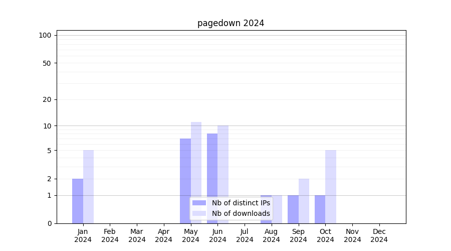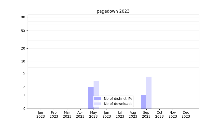 Number of downloads for experiment package pagedown, year by year, from 2025 back to 2014 (years with no downloads are omitted):