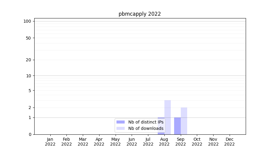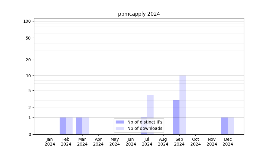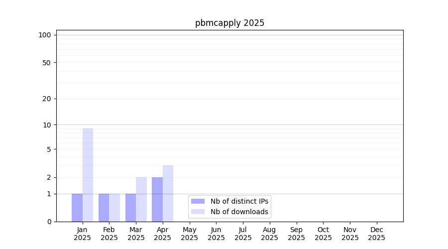 Number of downloads for experiment package pbmcapply, year by year, from 2025 back to 2014 (years with no downloads are omitted):
