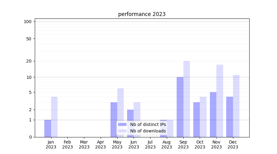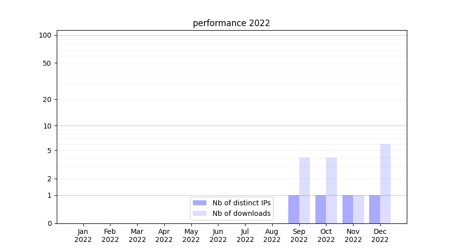 Number of downloads for experiment package performance, year by year, from 2025 back to 2014 (years with no downloads are omitted):
