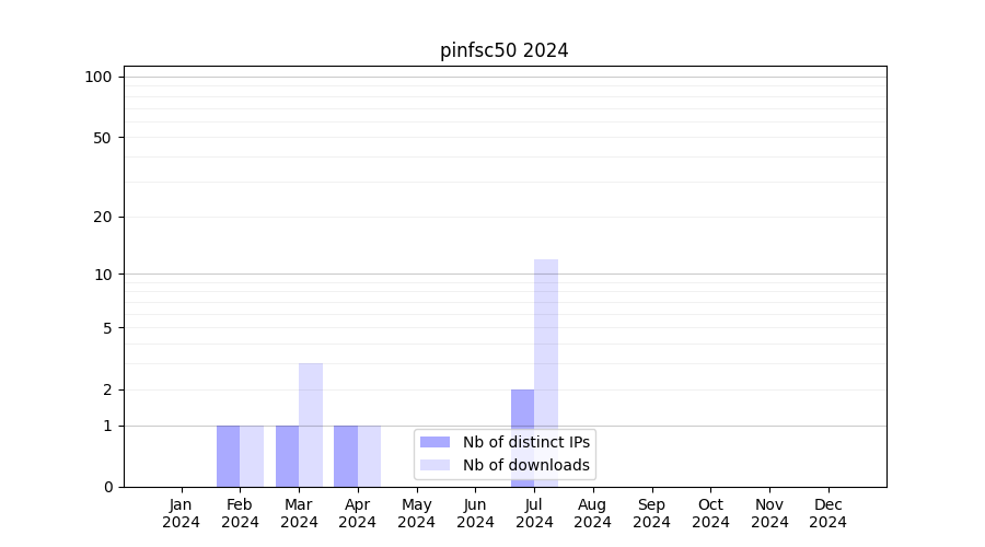 Number of downloads for experiment package pinfsc50, year by year, from 2025 back to 2014 (years with no downloads are omitted):