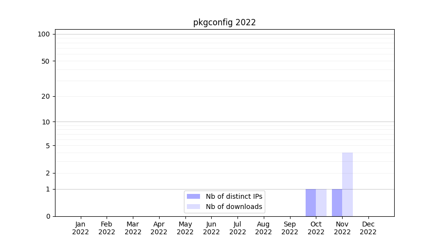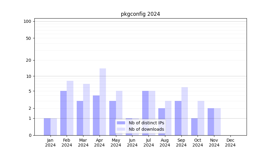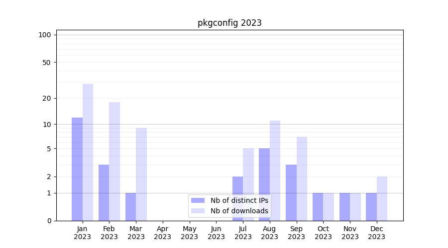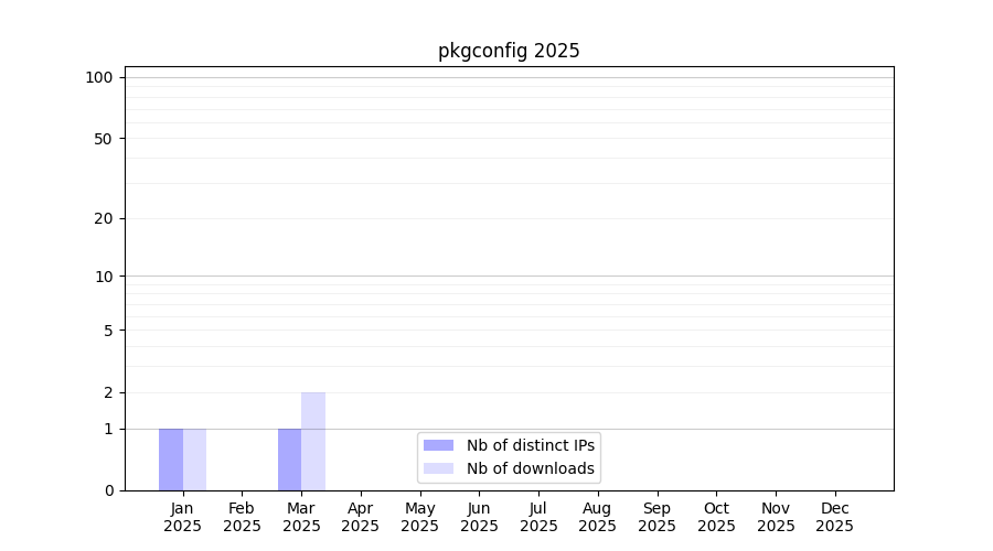 Number of downloads for experiment package pkgconfig, year by year, from 2025 back to 2014 (years with no downloads are omitted):