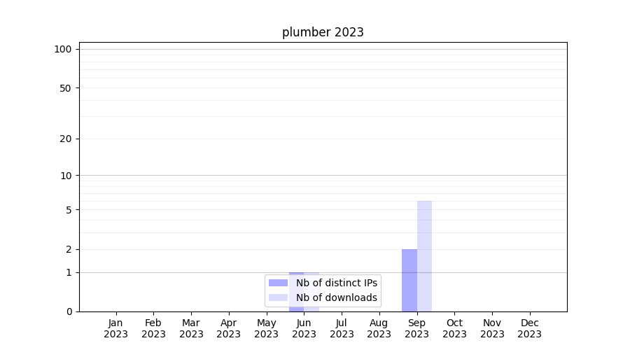 Number of downloads for experiment package plumber, year by year, from 2025 back to 2014 (years with no downloads are omitted):